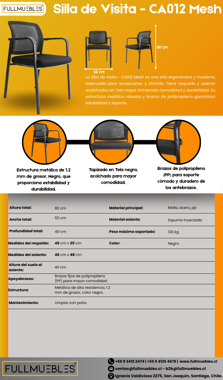 La Silla de Visita o Reunión Mirror - Cod - CA012 es la elección perfecta para agregar estilo y comodidad a tus salas de espera o reuniones. Diseñada con un enfoque en la ergonomía y la estética, esta silla ofrece una experiencia de asiento confortable para tus visitantes y empleados.
